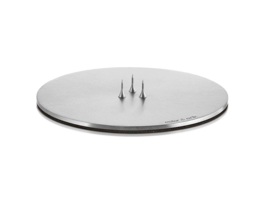 Okrúhle sviečkové podstavce majú jednoduchý a štýlový dizajn a hodia sa ku všetkým ester-erik ručne vyrábaným sviečkam. Podstavce sa používajú najmä s kónickými a valcovými sviečkami. Sviečku držia na svojom mieste tri hroty, ktoré zaručia bezpečné uchytenie. Podstavec má penový podklad, čo chráni podkladovú plochu pred poškodením.