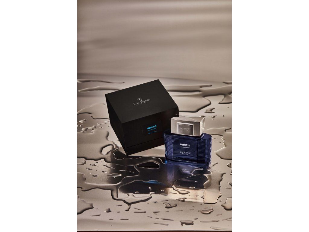 Luxusný parfum (70 ml) v exkluzívnom červenom flakóne s uzáverom oceľovej farby zo zamaku. Dizajn flakónu bol inšpirovaný retro butylkami, ktorý prostredníctvom sofistikovaného a nadčasového dizajnu odráža cestovateľskú dušu značky Ladenac.