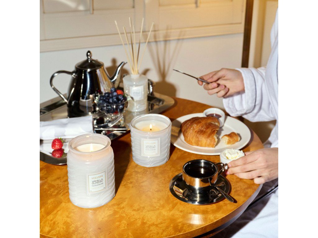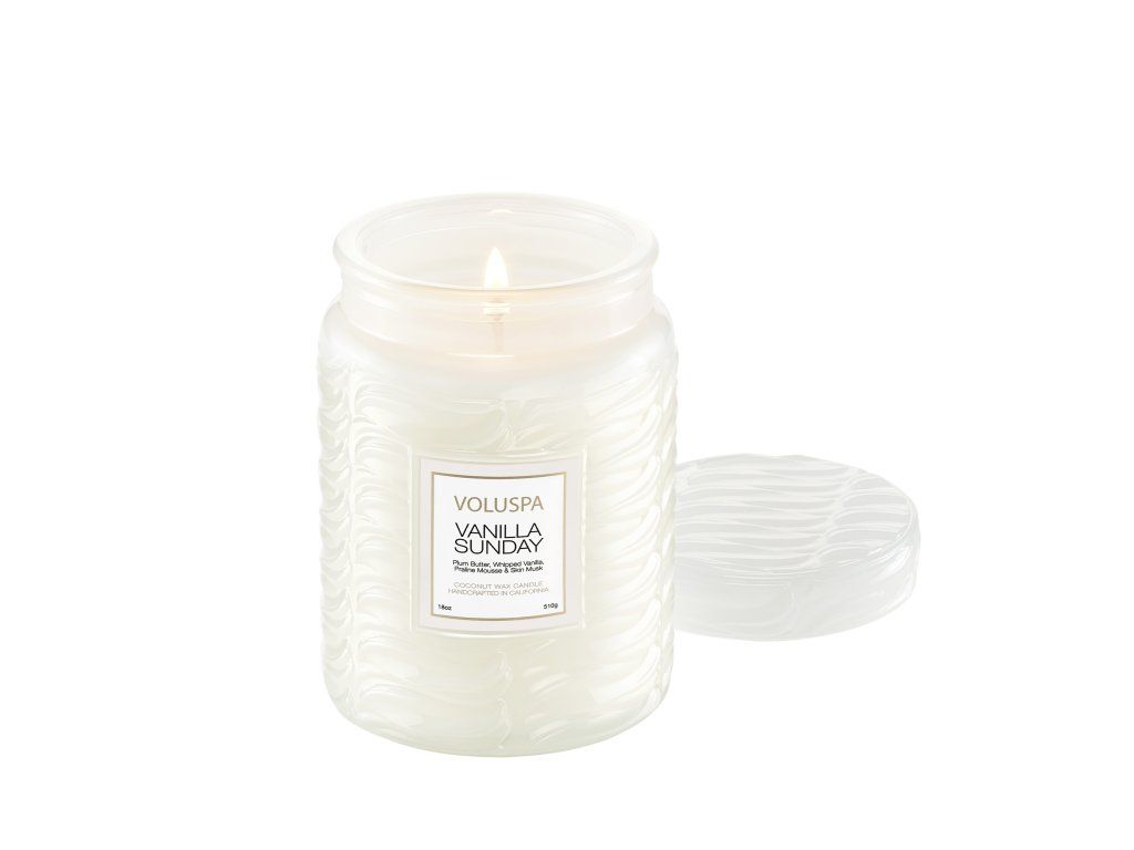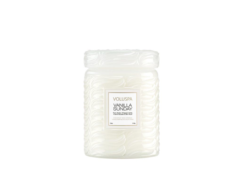 Unikátna zmes kokosového vosku značky Voluspa v modernej sklenenej nádobe s reliéfnou textúrou pripomína vanilkovú zmrzlinu a je doplnená ladiacim skleneným viečkom. Vďaka jednému knôtu si môžete vychutnávať vôňu až 100 hodín. Voluspa sviečky sú ručne vyrábané v Spojených štátoch a obsahujú vlastnú patentovanú zmes kokosového vosku s čistým horením a prírodné knôty. Naše produkty neobsahujú ftaláty, parabény ani sulfáty a nikdy nie sú testované na zvieratách. Po poslednom zapálení premeňte tento bestseller na originálnu dekoráciu vo vašom obydlí.